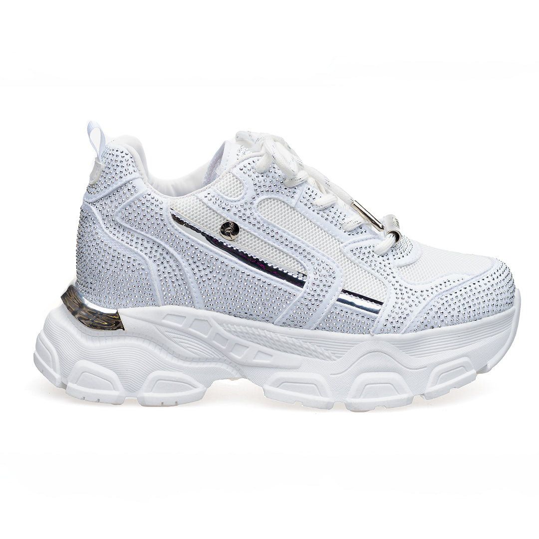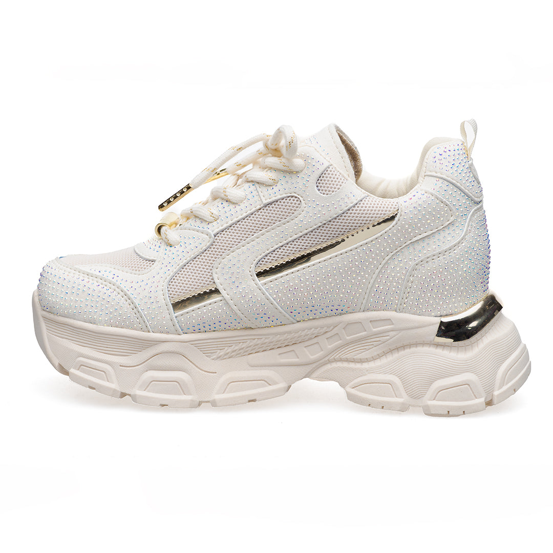 Este deportivo en sintético con apliques de pedrería sutiles es la opción ideal para mujeres que buscan un toque de brillo sin perder elegancia. Su diseño moderno con suela tono a tono y detalles traseros aporta sofisticación y versatilidad, mientras que la cordonería con herrajes de lujo resalta su exclusividad. La plantilla comfort brinda suavidad y soporte durante todo el día, convirtiéndolo en el aliado perfecto para combinar moda, comodidad y ese destello único que refleja tu esencia.