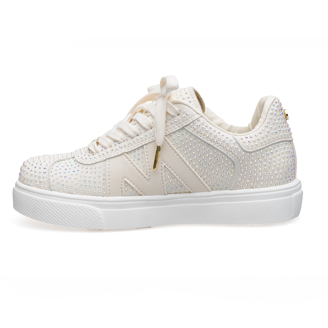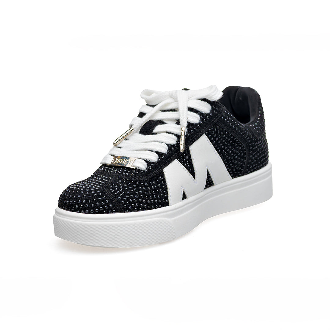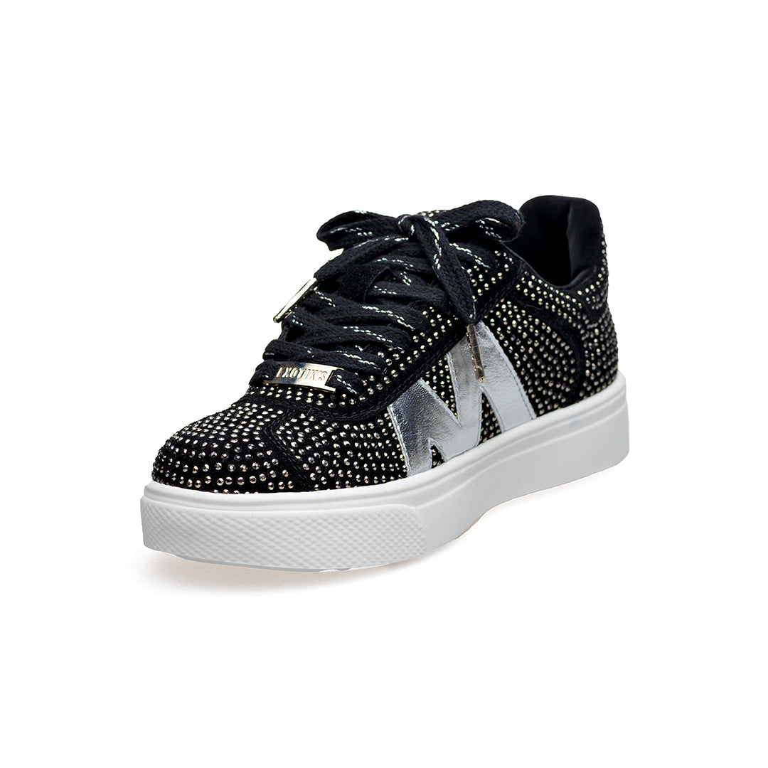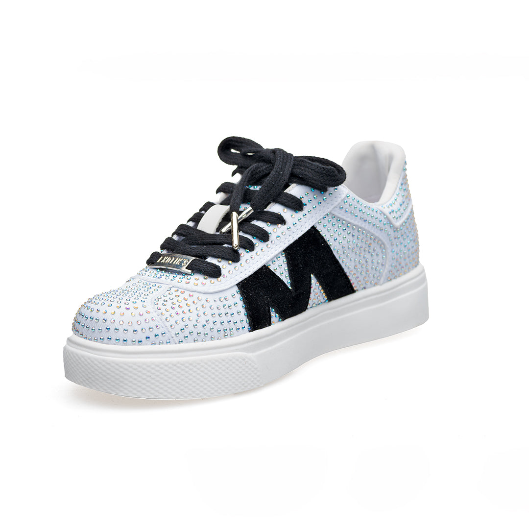 El Deportivo Sublimado en Pedrería Importada es ideal para quienes desean destacar con elegancia y sofisticación. Su capellada con pedrería importada realza tu brillo único, mientras que el detalle lateral en cordonería exclusiva añade distinción y originalidad. La suela plana con apliques ofrece comodidad y un diseño moderno y funcional, convirtiéndolo en el aliado perfecto para quienes buscan lujo, confort y estilo en un solo paso.