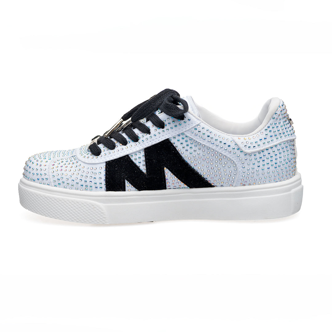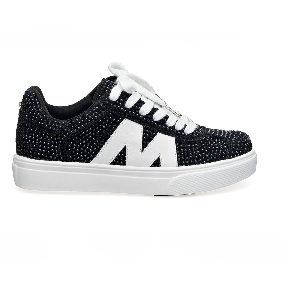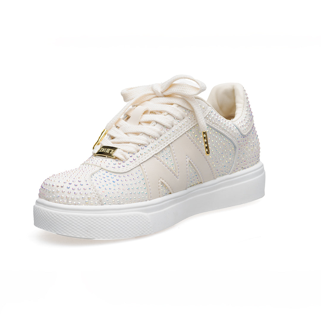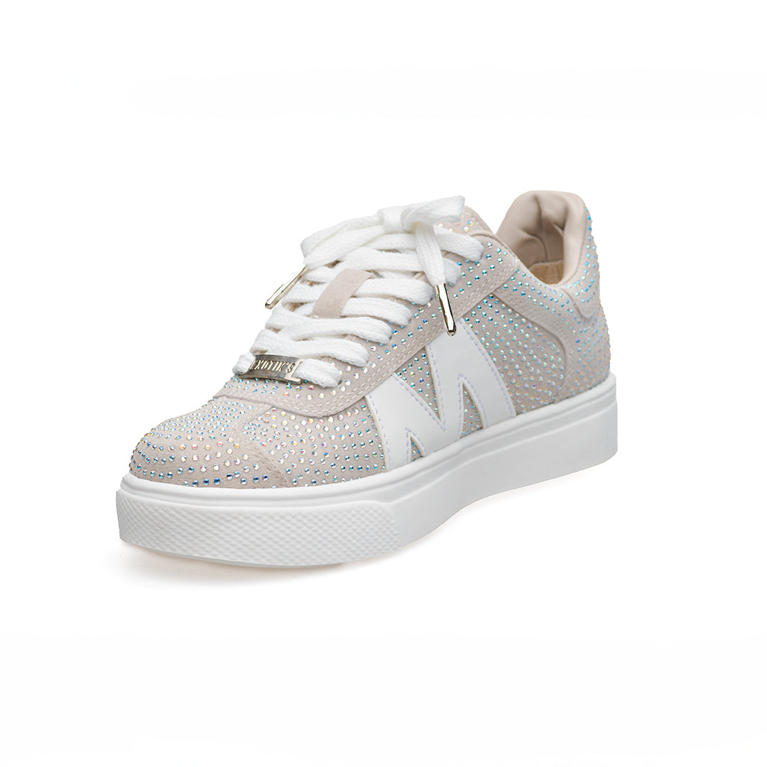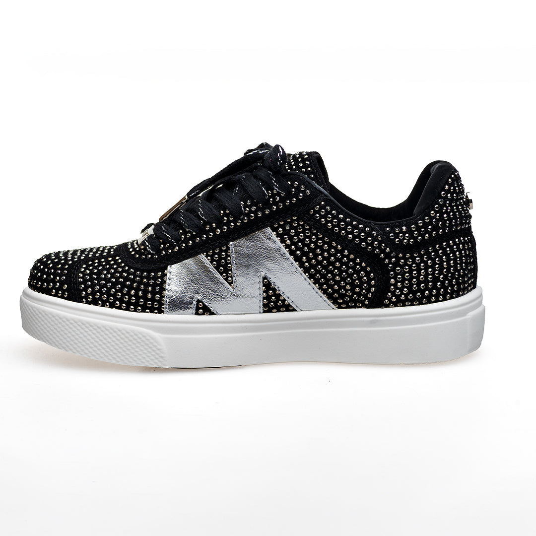 El Deportivo Sublimado en Pedrería Importada es ideal para quienes desean destacar con elegancia y sofisticación. Su capellada con pedrería importada realza tu brillo único, mientras que el detalle lateral en cordonería exclusiva añade distinción y originalidad. La suela plana con apliques ofrece comodidad y un diseño moderno y funcional, convirtiéndolo en el aliado perfecto para quienes buscan lujo, confort y estilo en un solo paso.