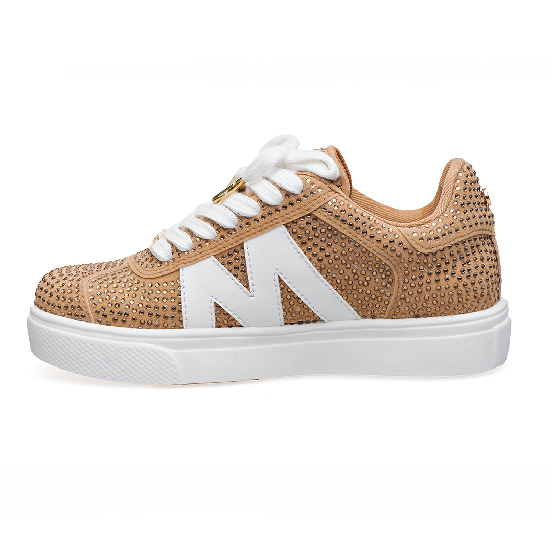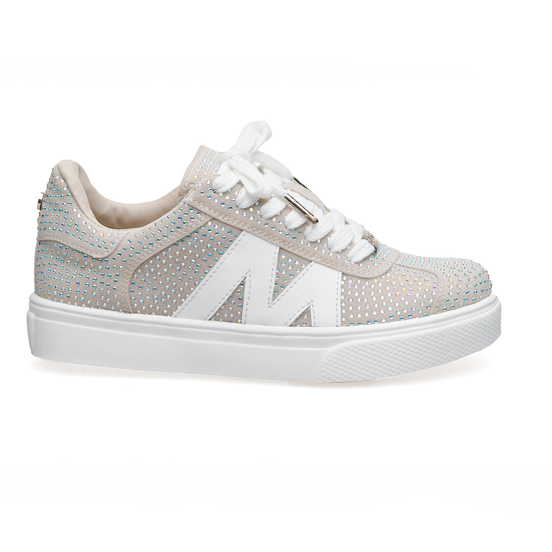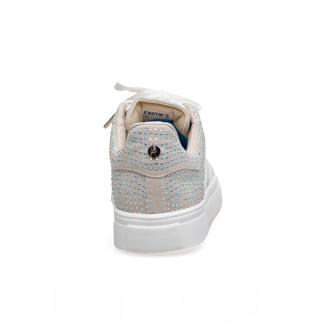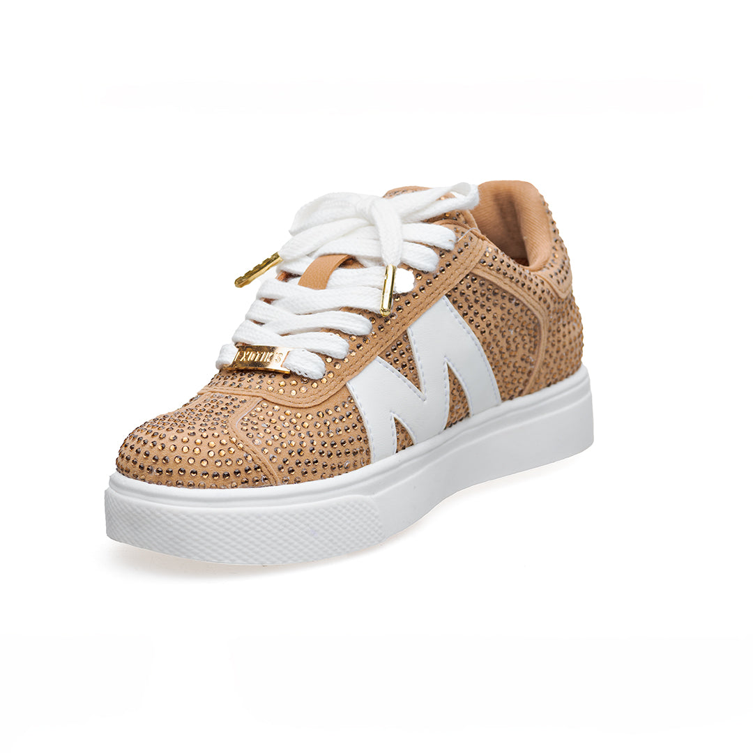 El Deportivo Sublimado en Pedrería Importada es ideal para quienes desean destacar con elegancia y sofisticación. Su capellada con pedrería importada realza tu brillo único, mientras que el detalle lateral en cordonería exclusiva añade distinción y originalidad. La suela plana con apliques ofrece comodidad y un diseño moderno y funcional, convirtiéndolo en el aliado perfecto para quienes buscan lujo, confort y estilo en un solo paso.