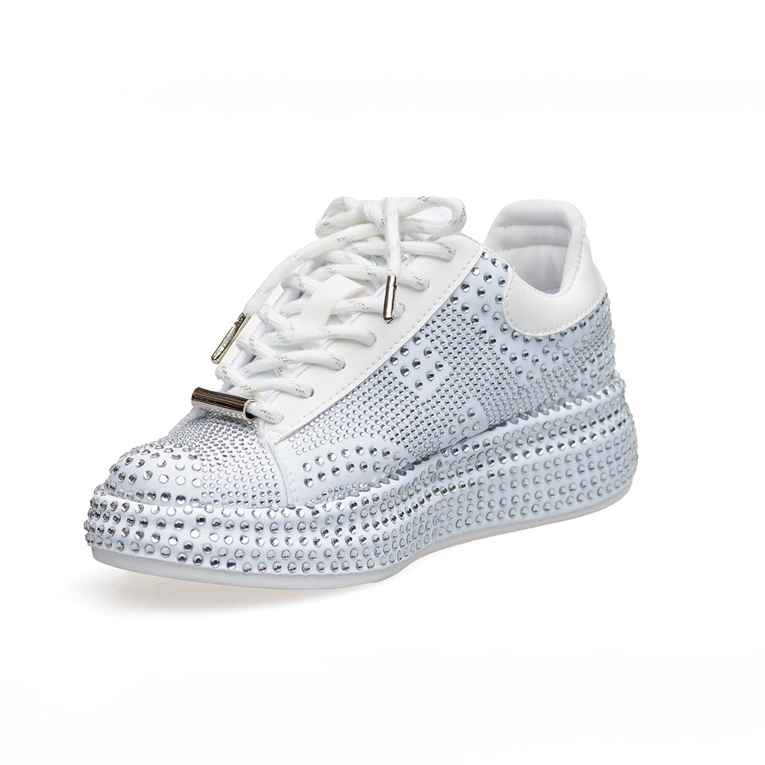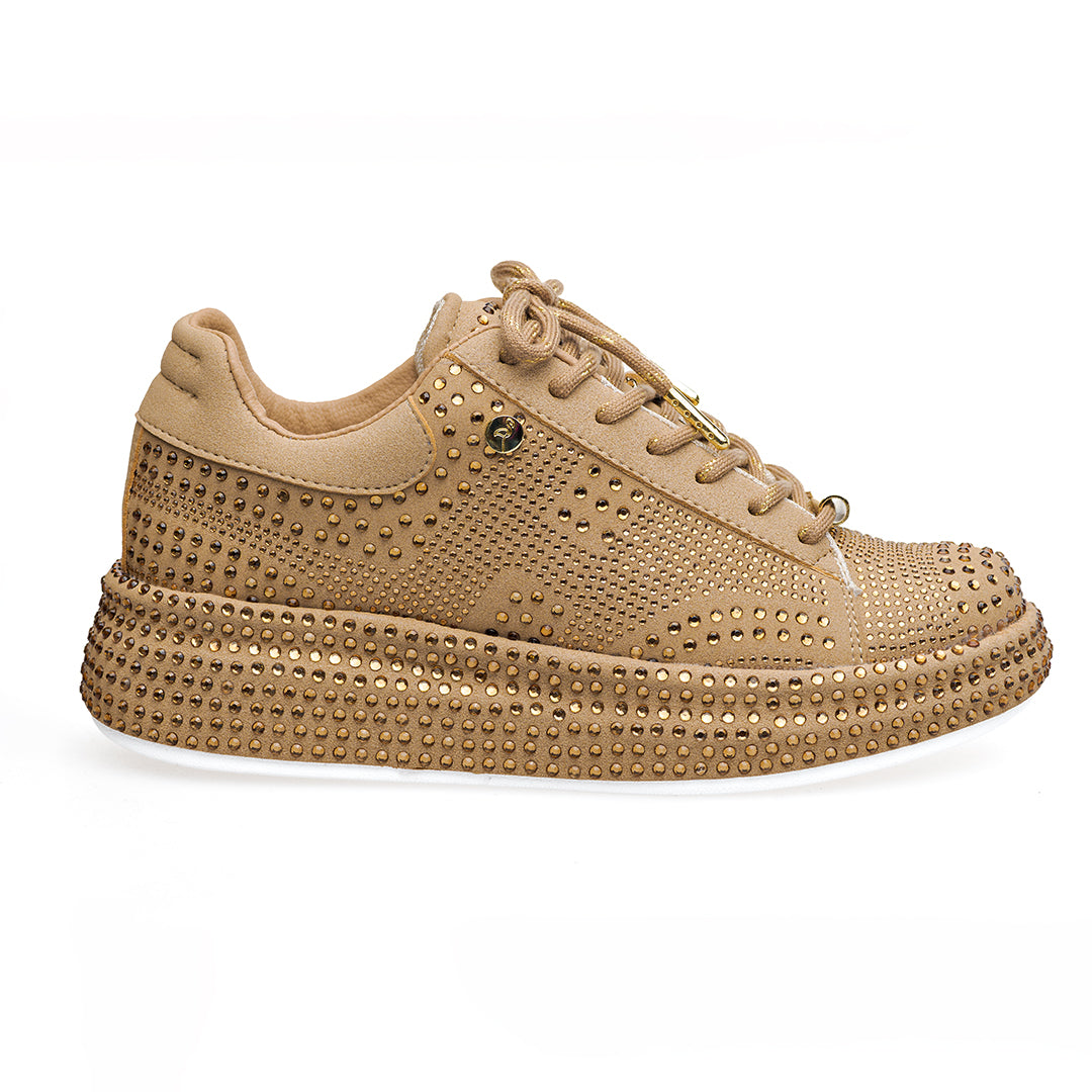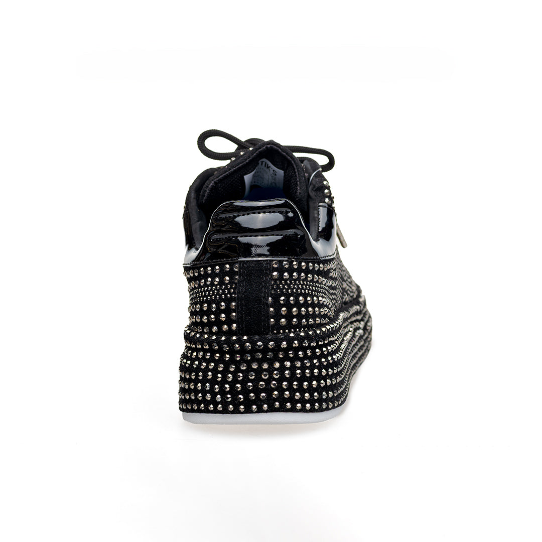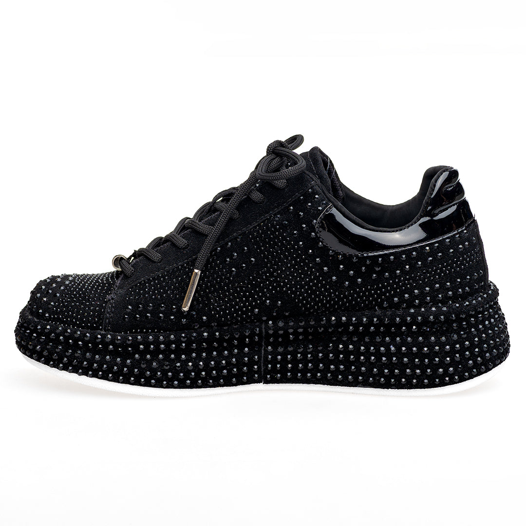 • Capellada y suela sublimadas en pedrería de dos tamaños: look vibrante y elegante.
