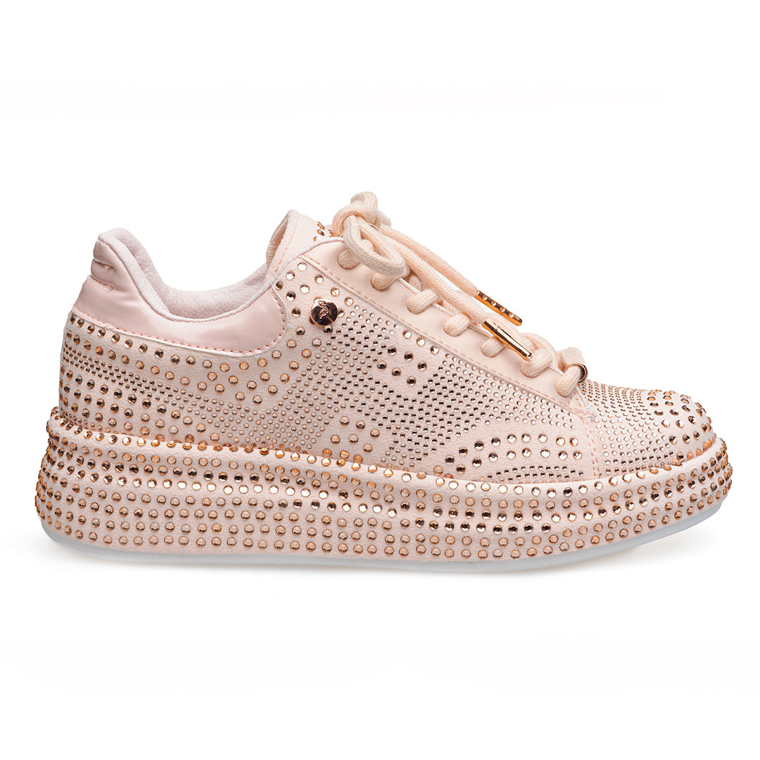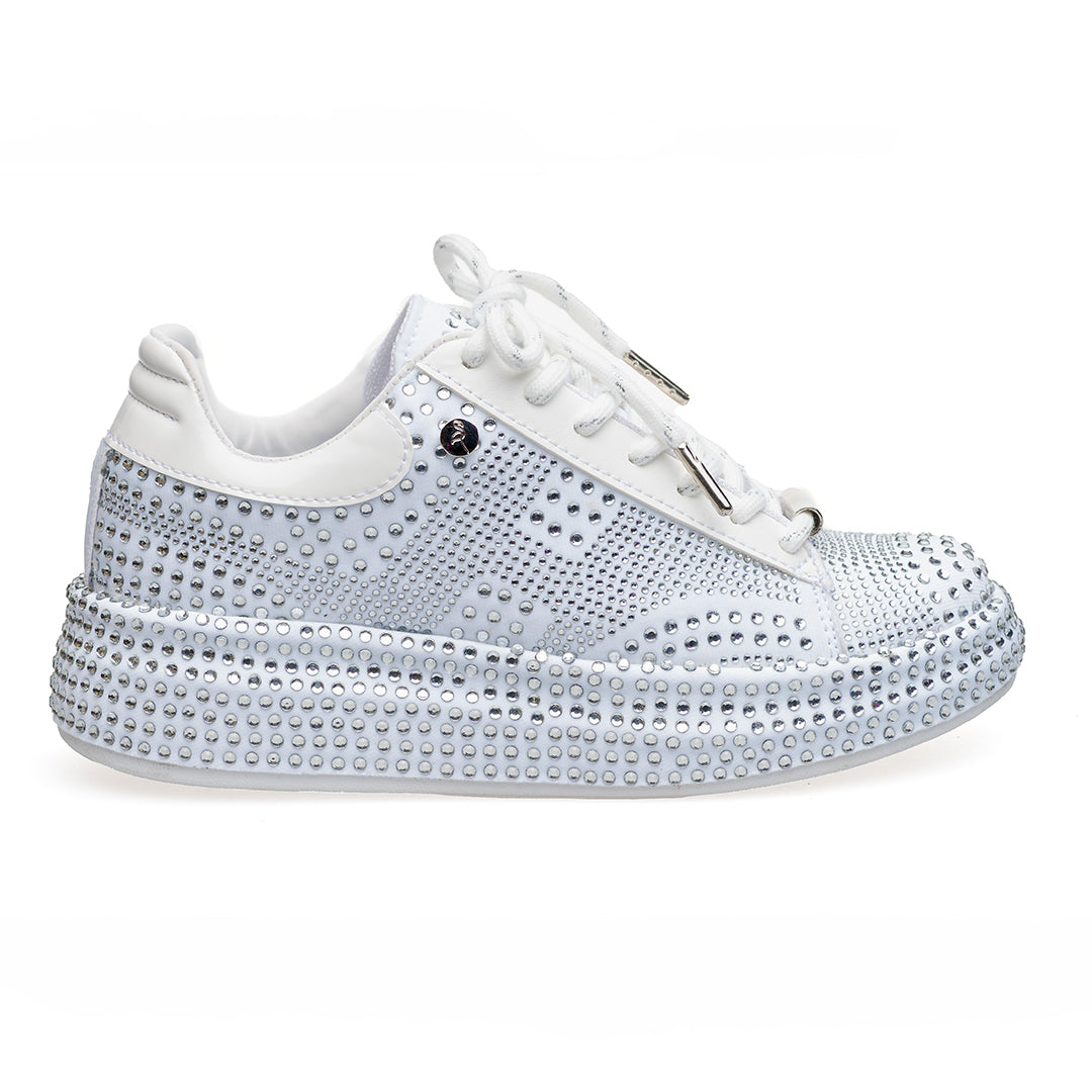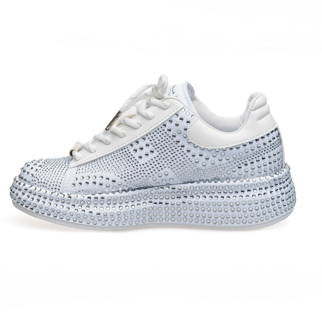 • Capellada y suela sublimadas en pedrería de dos tamaños: look vibrante y elegante.