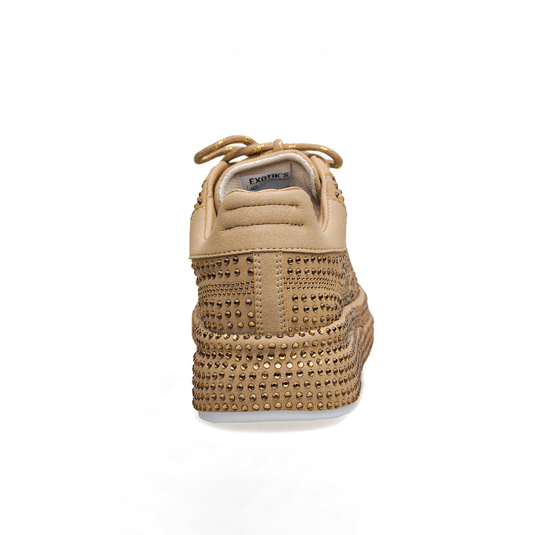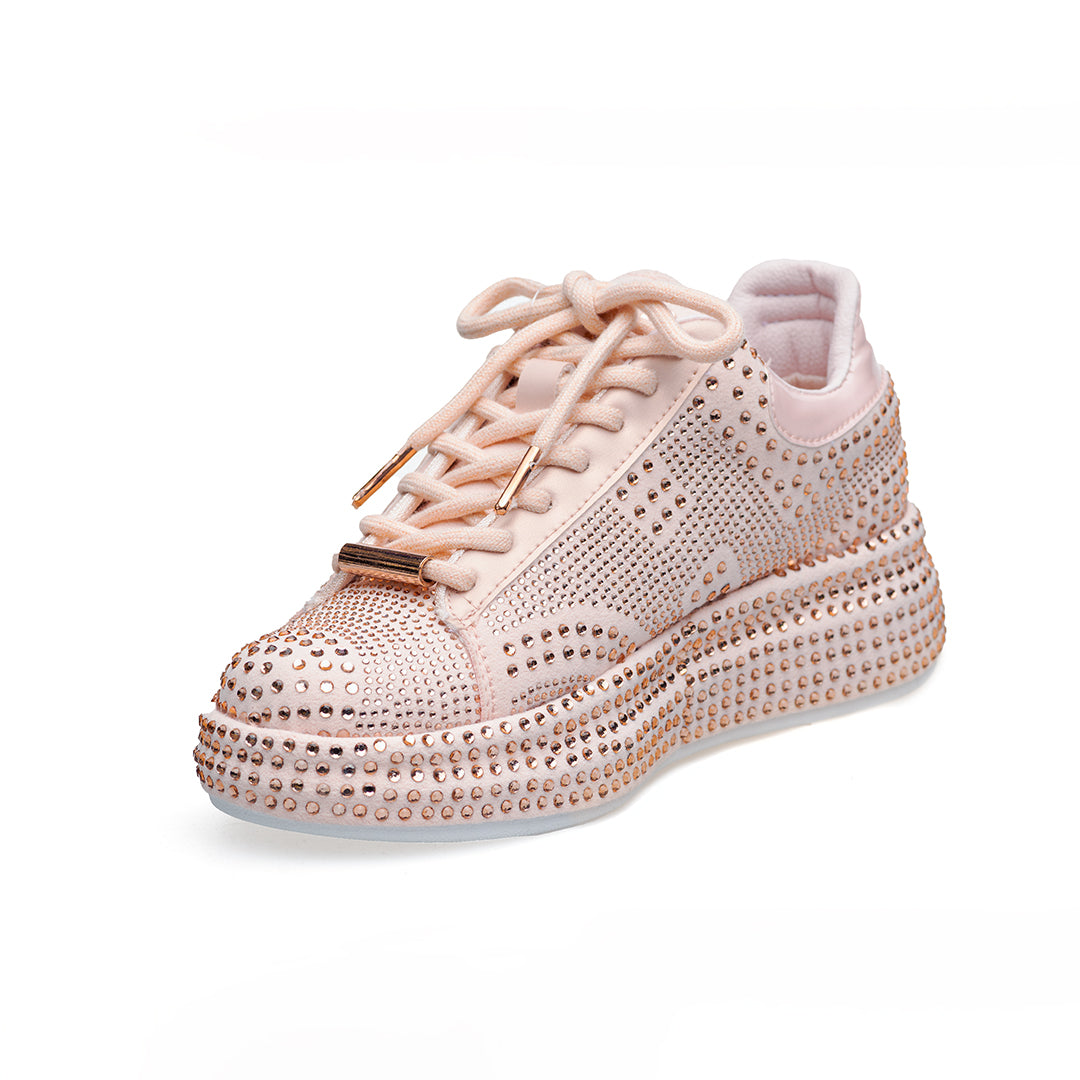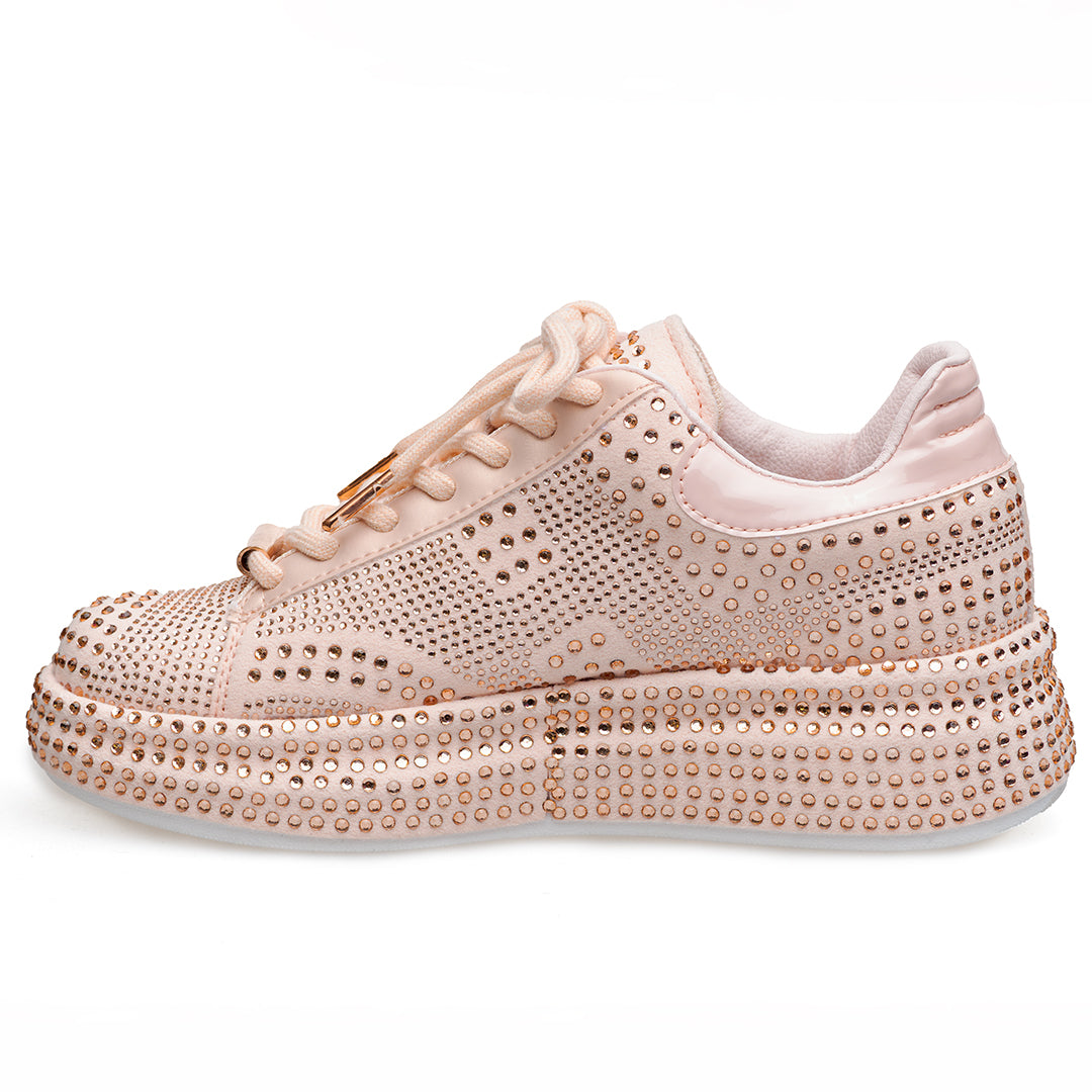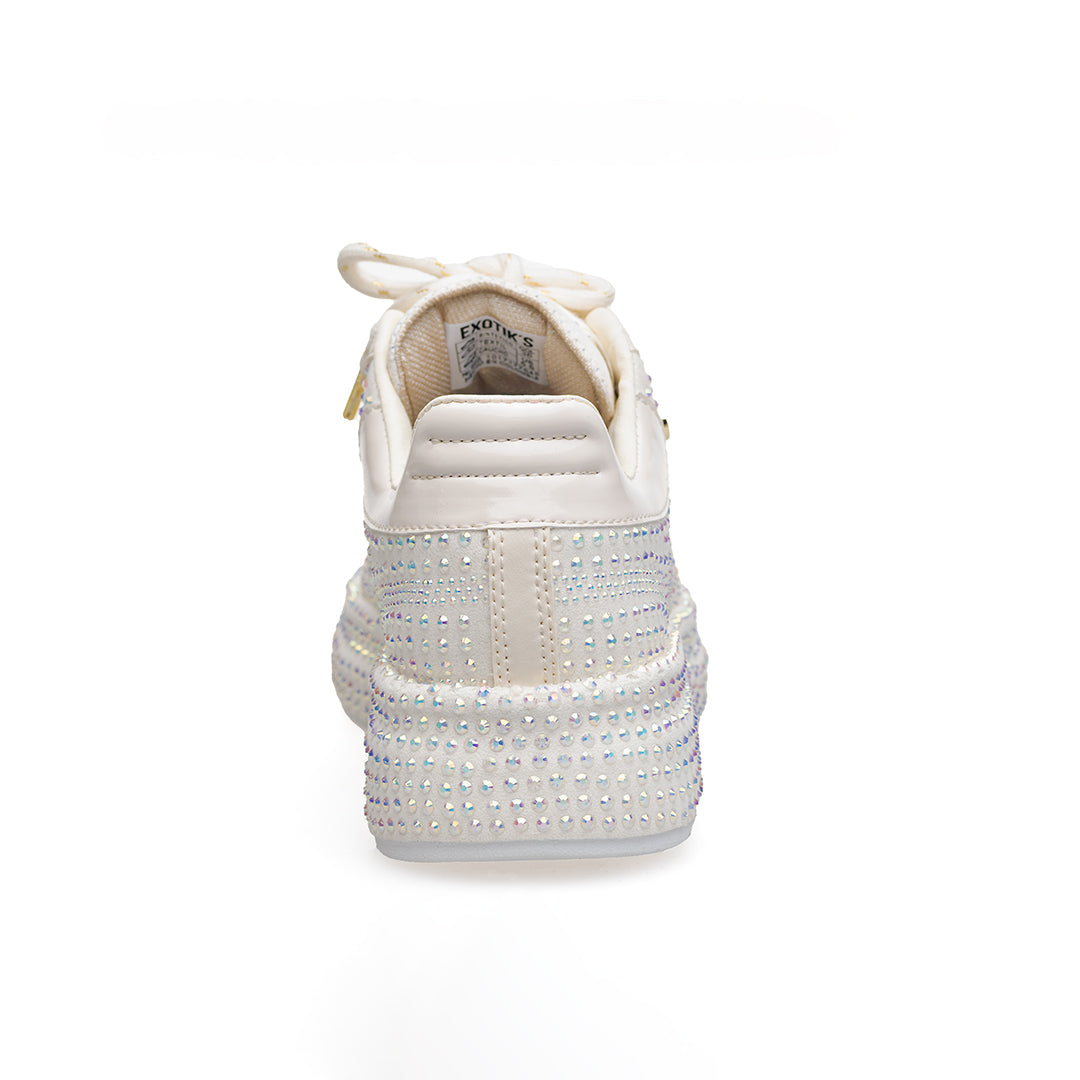 • Capellada y suela sublimadas en pedrería de dos tamaños: look vibrante y elegante.